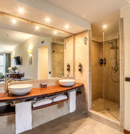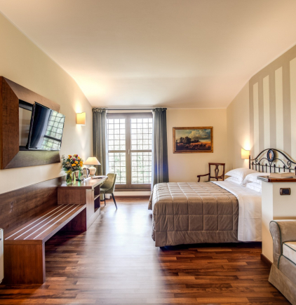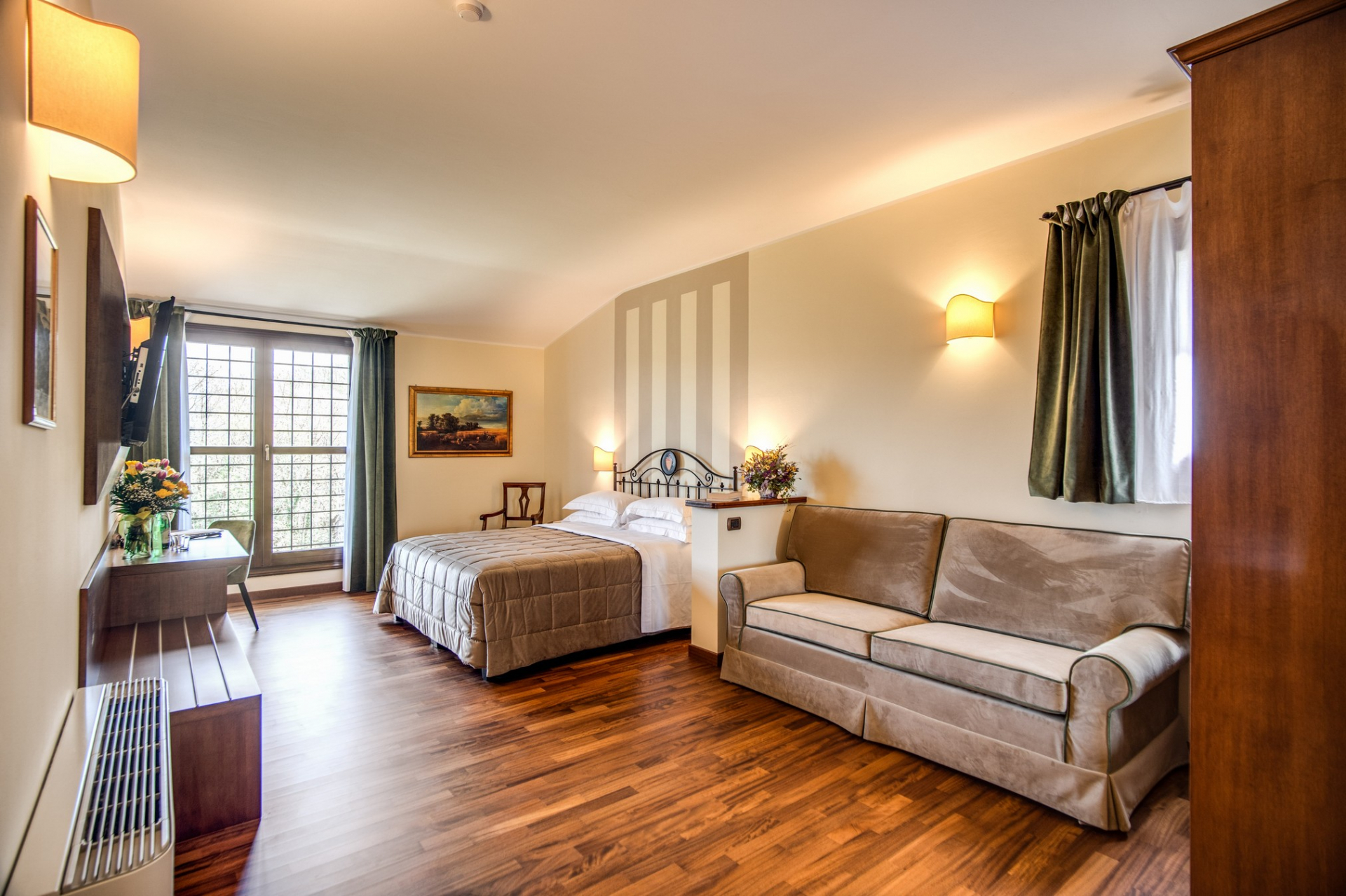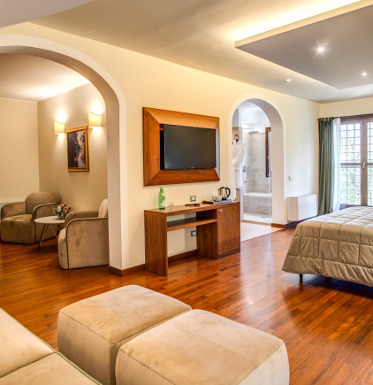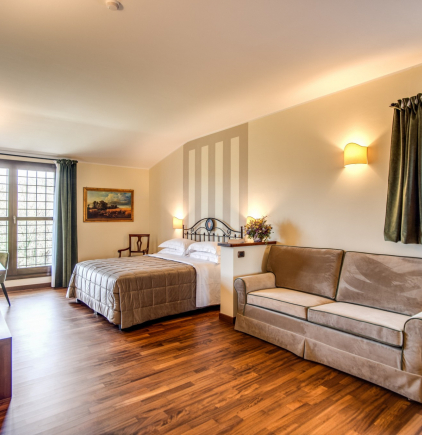 Suite rooms are very large and elegant rooms appointed with a classic style based on pastel colors, a confortable double bed, a large sofa bed and parquet flooring.
